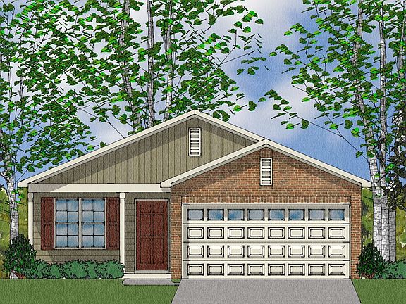 This single-story home includes 3 bedrooms and 2 bathrooms. Immediately inside the entryway is a flex space that you can turn into a dining room. The kitchen connects the free space to the family room, which can include a fireplace. The primary bedroom and its walk-in closet are just off the family room, and you have the option of vaulted ceilings in the primary bedroom. Two spare bedrooms share a second bathroom, and a laundry room is just inside the two-car garage.