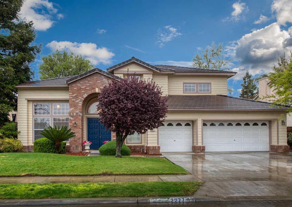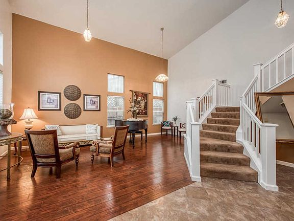 This beautiful 5 bedroom located near Nees & Armstrong is warm and inviting with gorgeous wood and tile flooring that greets you upon entry. The vaulted ceilings and warm color scheme provide a spacious open feeling with ample space for entertaining. The eat-in, cook's kitchen has lovely attention to detail with granite counters and backsplash, granite topped island with counter seating, updated stainless appliances, 5 burner gas cooktop, double ovens, pendant lighting over the granite island, counter seating and a walk-in pantry. With 5 bedrooms and over 3k sf, this home has plenty of room. The lower level has a bedroom, bathroom and laundry room. The upper level has 4 additional bedrooms. The expansive Master suite has room for a home office or home gym. En-suite bath has dual counters, shower and spa tub. Enjoy the large backyard, pool and covered patio. A large 3 car garage rounds out this beauty.