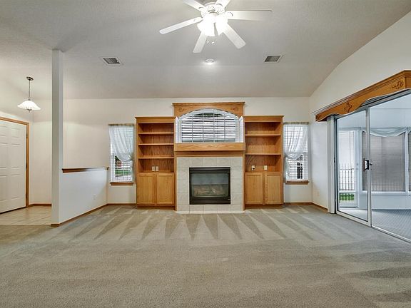 Zero Entry Patio Home with lots of room on a corner lot for extra large lot space. This home has a very open floor plan so you can live all on the main level and have no worries. As a rare bonus, this home has a sun room that has ductwork run to the room to allow this room to be used all year long. 2 large bedrooms with the master bedroom having an on suite bathroom newly remodeled with large walk in shower for easy access and closet being a walk in concrete safe room for storms. This is truly a rare find at this price so come see this home before it is gone. HOA covers lawn maintenance, exterior maintenance to beds and painting of homes, snow removal, sprinklers, and trash.
