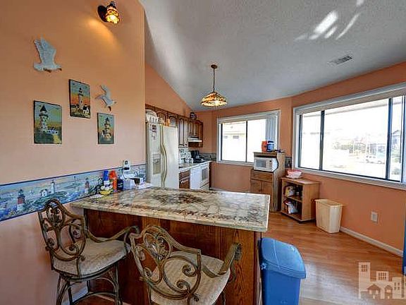 Great opportunity to own a 3 bedroom 2 & 1/2 bath 2nd row Round Beach House! Large amount of decking, skylights and fireplace make this an inviting place to live or use as an investment or relaxing spot. Home has 1/2 bath in screen porch area, relaxing outside shower, work island in kitchen, private beach access across the street.