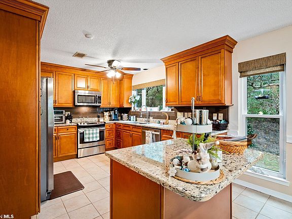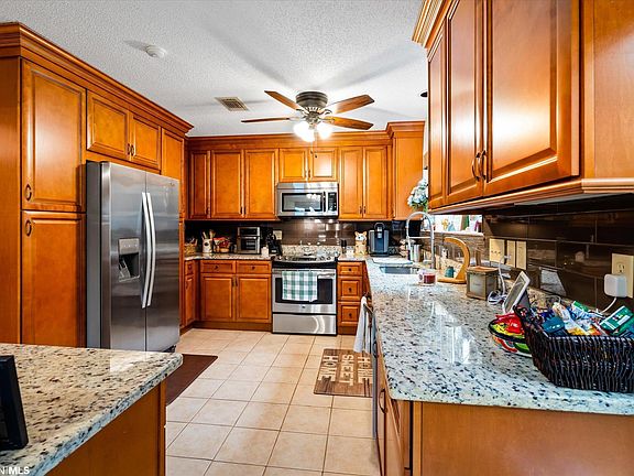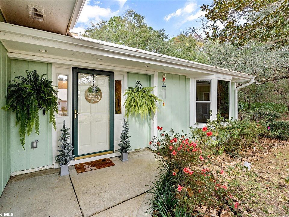 You're winter home is ready for you. 55+ Community This lovely spacious 3 bedroom 2 bath also has a heated and cool sunroom & office space/dinning room. A screened in porch. The living-room offers a vaulted ceiling.The kitchen has custom wood cabinets, ceramic tile backsplash, stainless steel appliances and granite counter tops. Master Bathroom has two walk in closets and a tile bathroom shower. All appliance stay. Sold partially furnished.The sellers just put in a Nest doorbell and thermostat. Just a few miles from the sugar white sand beaches in Gulf Shores and Fort Morgan. This home is lined with trees for extra privacy. Enclosed single car garage with 8 ft garage door. The community amenities has Clubhouse with kitchen, indoor swimming pool, wood work shop and access to the Bay. Additional wind & hail insurance payment due March 1