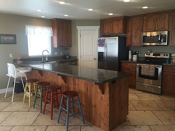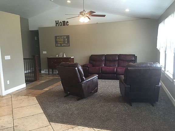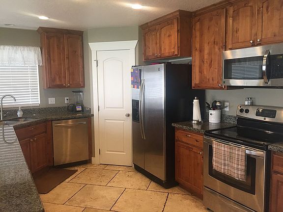 Beautiful new home in a great neighborhood. This home has tons of upgrades including granite countertops, travertine tile floors, 3 toned paint, upgraded super soft carpet, 2x6 walls and trusses, insulated garage and garage door. This home has an amazing landscape with a sprinkler system, deck, fire pit, underground trampoline, garden area, dog run with house, shed, fully fenced in.