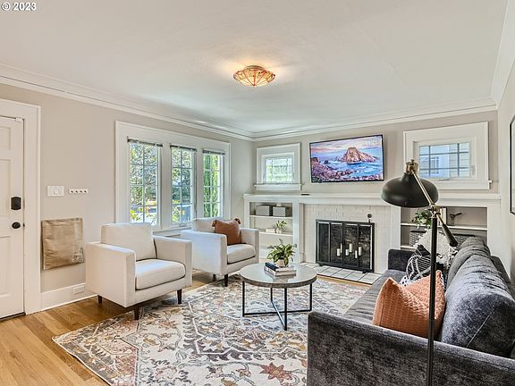 Wonderful Ladd's bungalow! Light and bright and beautifully updated. Period built-ins, glass doorknobs, and refinished hardwood floors throughout the main level provide warm vintage character. While the smart home features and remodeled kitchen with stainless appliances, butcher block counters and eating bar deliver modern functionality. The roomy finished basement has a large bedroom/office, family room with large screen TV and flex space for your hobbies. There's lots of potential for the 3rd floor attic space which is not included in the home's square footage. Located off the back alley is a rare, to-die-for, 2-car, oversized garage with RV bay, shop area, and plenty of room to store all your toys. Rounding out the property is a fully fenced back yard with covered patio (perfect for your BBQ), espaliered fruit trees, hops, and raised garden beds. All of this is located in the friendly Ladd's community within blocks to area schools, shops and restaurants. It has a walk score of 92 and a bike score of 99. Cute as a button and ready for you to move-in! [Home Energy Score = 2. HES Report at https://rpt.greenbuildingregistry.com/hes/OR10221290]