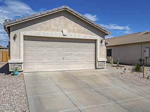 A gorgeous, move in ready, 3 bedroom open floorplan that is a must see!! The kitchen comes equipped with luxurious countertops, beautiful backsplash, a breakfast bar, stainless steel appliances, all overlooking your large great room, PLUS save THOUSANDS on Fridge, Washer, & Dryer all to convey! The extra large greatroom takes up the east wing of the home & is perfect for those family get togethers split from all your bedrooms on the West wing. Stepping outside you are greeted to beautiful backyard with top of the line faux grass, a raised garden, & extended patio. The entire home is equipped with a Water Softener, & a RO system for crystal clear water. The garage ceiling is even insulated to keep the garage as cool as it can be during the summer. Hurry, as this beauty won't last long!