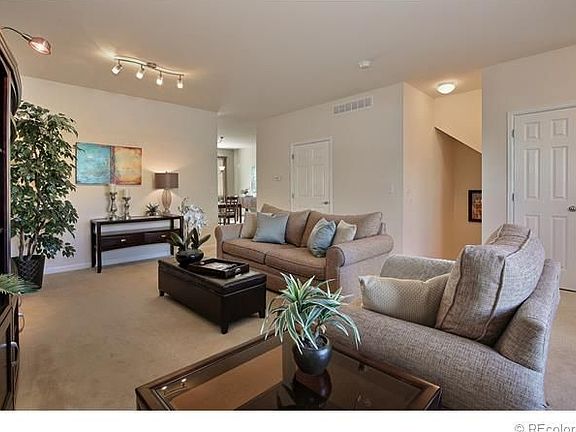 Stunning Town Home in Creekside at Saddle Rock East! This three bedroom and three bathroom home is clean, light and bright, impeccably maintained and well situated within the community. This home has it all- slab granite countertops with custom backsplash, wood cabinets, beautiful stainless steel appliances, bar-height countertop that's perfect for barstools, gas stove/oven, back-patio perfect for grilling, a living room or dining room with a gas fireplace perfect for entertaining, extra large family room that can easily be used as two separate seating areas, large master suite with vaulted ceilings and a master bathroom with separate vanity spaces. This home has too much to list and will not last long! Filters into the prestigious Cherry Creek 5 Schools. Large Two Car Garage with room for storage.