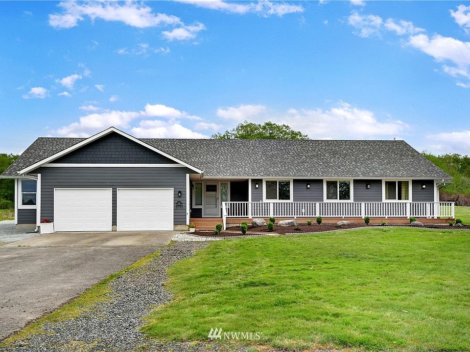 Gorgeous custom home in Conway on 5 acres. This home has an open floor plan with kitchen and dining area adjoining large living room. The Kitchen has beautiful granite counters, lots of cabinets & walk in pantry. With 3 bedrooms and 3 baths, this home has all the fine touches you expect to find in a custom home including two master suites with private baths, formal living and dining rooms, workshop in the garage. Both masters come with walk in closets and Jacuzzi tubs. Sits on a private location yet close to I-5. Container stays with the house and a new water treatment has been installed.