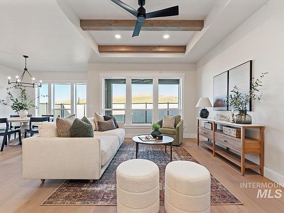 Bright open great roomPrivate courtyard entryElegant tray ceilings