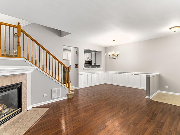 This great home has a new roof in 2019. No planned special assessments. 3 bedrooms, 2 1/2 baths. Heated garage. Board & batten trim work in the dining room and stairway. Larger pantry with customizable shelving. Built-in shoe/coat storage. Built-in garage shelving. Customizable shelving in a master walk-in closet. Large loft space. Fireplace. Modern paint schemes and white trim throughout. Can lighting in kitchen and loft. Across from gazebo/park. Walking distance to Homestead elementary school in acclaimed School District 308. Additionally, the unit comes with a headed garage, security cameras, nest doorbells, nest thermostat, and curtains.