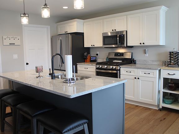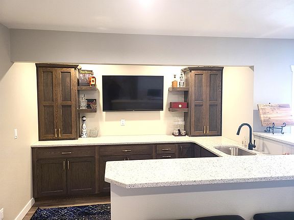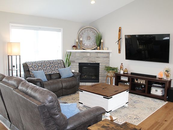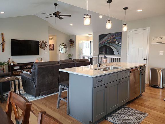 Almost new Asbury ranch home in Carver Heights. This 4 Bedroom, 3 Bath home is spotless and has over 2700' of finished living area. The open floor plan living area has white cabinets and a grey island finished out with upgraded granite, SS appliances and walk in pantry. The upstairs family room has a fireplace and the dining room opens to an oversized East facing deck. Lots of light timber oak hardwood in main floor living area. In the just completed lower level you will find an awesome bar complete with sink, refrigerator and quartz tops. The large lower level family room has a sliding door that opens up to a large patio with level yard and professionally installed retaining wall. The finished 3 car garage has hot and cold water and is deep enough to fit full size pickups or SUVs. The front of home has sill height stone, board & batten smart siding and the windows are modern black vinyl. The showcase landscaping includes poured edging and Hunter brand sprinkler system. This home is located within walking distance to a new rope climbing playground, parks, library and Carver Elementary/Roosevelt Middle schools.