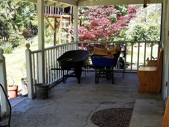 Country Home on 1.05 acres with many extras, large open shop, attached 2 car garage, small shop, covered patio and an open patio. Fenced area for a garden with fruit trees, cute pond and tree house. Propane stove in kitchen with a wood stove in living room for alternative heat source during cold winter nights. Open well that runs 10 gal per min per seller and an additional shallow well. Just minutes to Canyonville. Buyer to verify rm sz