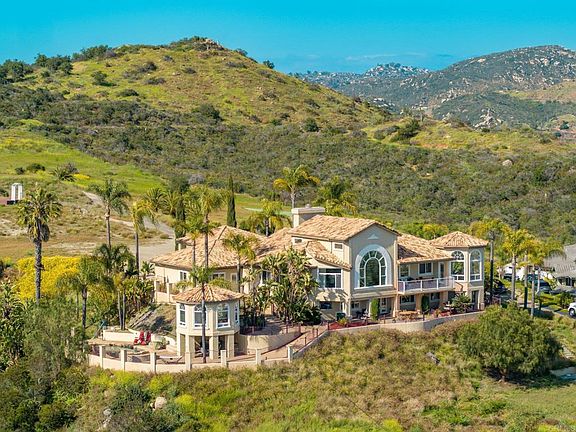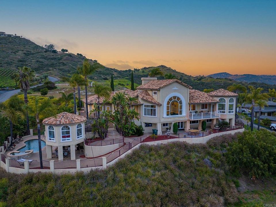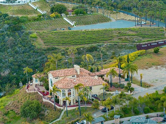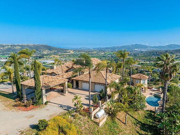 Welcome to your Mediterranean paradise in the hills of Northern San Diego County, where breathtaking views of the San Marcos valley and ocean meet luxurious living. This stunning 8.5 acres estate is nestled next door to a stunning hillside vineyard offering a unique and exclusive lifestyle for the discerning buyer. INCOME PRODUCING BONUS ADDED VALUE This estate is located in the unincorporated area of San Marcos and governed by San Diego County which, unlike the city, does not have regulations for short-term rentals — offering the perfect opportunity for short term rental owners and investors. Also, the land is mostly level providing opportunities for additional ADUs or income producing development. Seize the opportunity!