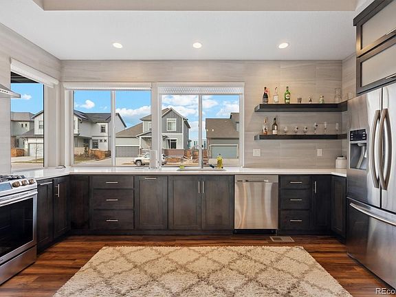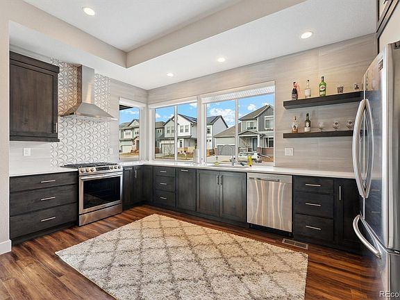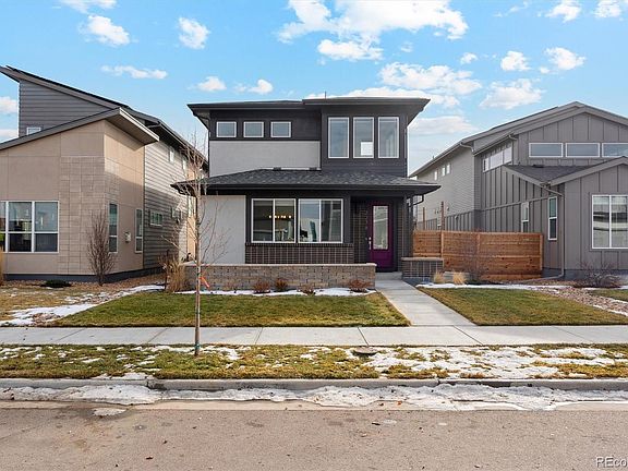 Come see this beautiful and unique 3 Bed/5 Bath home, featuring a modern and open floor plan that feels spacious yet inviting. The abundance of windows throughout the home offer tons of natural light all year-round and include custom blinds. A convenient flex space on the main floor provides an ideal space for remote work or a 4th bedroom. Upstairs offers a unique design with the primary suite featuring a showstopping his/her wrap around bathroom with a rain shower and separated vanities/toilets/closet on each side. The primary suite also features another bonus space complete wraparound windows. This extra space is currently being used as a reading/relaxation room to look out at the mountains, but others have used it as a workout space, yoga/mediation area or even a nursery, you name it! The second bedroom suite includes its own private bathroom and closest, perfect for your teenager, in-laws or out of town guest. The finished basement includes the third bedroom and a full bath, making hosting or renting a breeze! The basement entertainment space can serve as a man cave to end all man caves. Extra studs have been added to support multiple tvs and the wet bar features two levels of countertops, a sink, beer/wine fridge and a custom kegerator. The 2-car garage is fully finished with drywall, insulation and a coated floor. Enjoy on of the biggest lots in midtown which allows for a huge side yard complete with a concrete patio with space for entertaining and a cozy yard with turf for the kids and dogs. FULLY PAID OFF SOLAR will keep the price down during those cold winter nights and hot summer days. The neighborhood is vibrant and full of amenities. Take your pup to one of several dog parks located in the Midtown neighborhood then meet friends at the on-site brewery, beer garden and brunch restaurant. Walking distance to trail/biking network and open space. Easy highway and light rail access to Denver/Boulder/skiing etc.