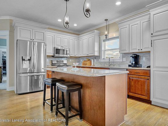 Custom Built Ranch. Split Bedroom Layout. Built in 2018! This 4 Bedroom, 3 1/2 Bath Home is like new and ready for you!! Enjoy this Spacious, Sunlit Home,1670 Square Feet on the Upper Level with an Open Layout and Southern exposure. The Living Room has Vaulted Ceilings and a Gas Fireplace. The Gorgeous Kitchen offers Quartz Tops,Tile Backsplash, Spacious Island, Stainless Steel Appliances and Tall Uppers with Crown Moldings to set this all off! The Dining/Eating Area walks out onto a nice Covered Deck that overlooks an Open Field. The Main Bedroom offers a Spacious Walk-in Closet, Double Sink Vanity and a Shower. 2 more Bedrooms on the Main Floor with another Full Bathroom. A Barn Door Style Door separates them in the Main Hall from the Living Room. Notice the Upgraded Trim Package throughout including the 3 Panel Doors. First Floor Laundry and a Half Bath are tucked away off the Kitchen. The Lower Level offers a Family Room with a Bedroom and a Full Bath. An additional Finished Room that would make a great Home Office, Workout Room, Hobby Room or Play Area. This home also comes with a Whole House Generac, Water Softener, Reverse Osmosis System, Yard Sprinklers and an OVERSIZED 2.5 Car Garage. Just outside of Town this location has Sidewalks, Sewers, Underground Utilities and Well Water! High-Speed Internet is INSTALLED!