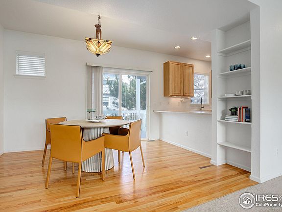 Bright south facing townhome! Located in the desirable Watersong neighborhood, this bright and sunny townhome sits right next to the community pool. Here you're welcomed with a flood of natural light, an open floor plan, new carpet, wood floors, and a cozy gas fireplace. The kitchen features stainless steel appliances, new kohler sink/faucet, wood cabinets, tons of storage, and a breakfast bar open to the dining room. Views of the trees are just outside on the wood deck with access to the private fenced-in backyard. The primary bedroom has vaulted ceilings with an en suite featuring a double vanity. There's room for an additional bedroom or home office on the upper level, plus a laundry room for your convenience. Extra storage can be found in the ground-level 2-car garage. This is the perfect location right beside the Left Hand Creek Trail and close to the Lobo Trail, as well as the Longmont Greenway. HOA includes access to the neighborhood parks and covers roof, exterior maintenance, fence maintenance, and common amenities. Newer roof and exterior paint.