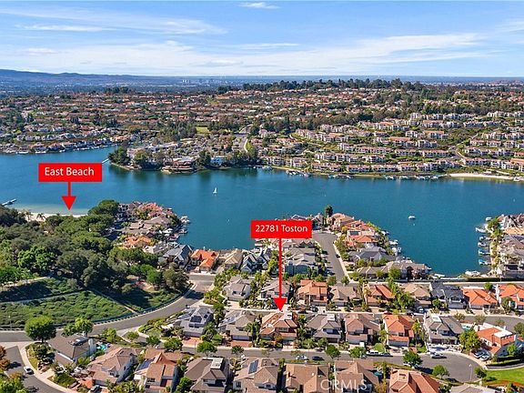 Lake Mission Viejo views at your very fingertips! Experience a true and intimate Lake living at its best! Charming and elegant one of a kind customized home with beautiful sweeping lake views and a premium location two streets off Lake Mission Viejo! Situated in the lakeside community of Andalusia on a smaller, premium, single loaded cul-de-sac street with a gorgeous private park and beach (East Beach) at one end of the street and scenic walking trails at the other end. Enter the home through the formal foyer and be greeted by the warm neutral finishes, soaring ceilings and quality fixtures. The expansive floor plan of 3,427 square feet (approx.) includes a formal living and dining room, over-sized home office and library, kitchen, family room, downstairs bedroom, master suite, and two secondary bedrooms upstairs (rare feature-three of the four bedrooms are larger than average). The chef's kitchen is the heart of this home with no expense spared in this complete remodel which includes a stunning custom craftsman high quality center island, beautiful Quartzite counter-tops, high quality stainless steel appliances, pantry, breakfast nook, and garden window with lake views. The serene master suite is private with a retreat area, fireplace and balcony overlooking the lake. The master bathroom is a complete remodel with marble counter tops and tiling, soaking tub, and custom quality fixtures. One of the crowning features of this home is the beautiful backyard with panoramic lake and city lights views, large covered patio, raised deck for outdoor dining area and an in-ground spa. The mature landscaping is unique and adds character and warmth to the home. Experience living only steps away from the lake's edge, East Beach and North Beach, shopping centers, lakeside dining and much more! Perfectly situated to face North Beach and enjoy the concerts and fireworks at the lake from your backyard! Lake Mission Viejo membership included with access to boating, fishing paddle boarding, swimming, summertime concerts, movies, holiday festivities & 4th of July firework extravaganza! This special home has been truly loved and cared for by the current owners for over 30 years. Situated in the heart of the Lake community, this is a treasure waiting to be called your home!