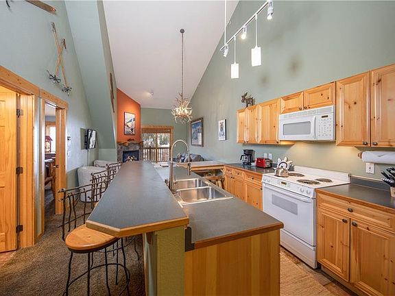 Top floor penthouse 2Bd/1.5Ba with big vaulted ceilings and even bigger ski slope views. Take in the sights and sounds of the Snake River and wetlands while enjoying a morning coffee on your large and sundrenched south facing deck. Low HOA dues with great amenities - hot tubs, heated garage parking, ski lockers, common lobby and more. Easy walk to the ski slopes and Mountain House base area. No transfer tax or resort fee. Washer/dryer in unit. Turnkey.