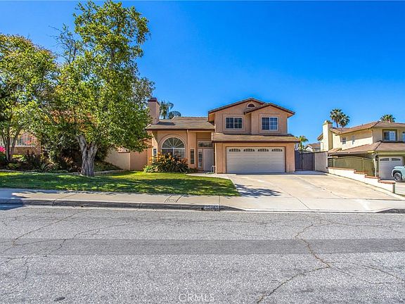 NEWLY REDUCED PRICE- MOTIVATED SELLERS- COME CHECK OUT THE WATERFALL AND GORGEOUS COMPLETELY RENOVATED HOME-YOU WON'T BE DISAPPOINTED! It"s back on the market, because buyer was unable to perform. Beautiful views of the hills nestled in a lovely neighborhood in Grand Terrace. This enchanting house is surrounded by nature, rolling green hills and valleys and a water feature in the backyard of a waterfall and stream coursing through the green grass. Relax on your back patio to the calming sound of water flowing and creating the perfect haven to enjoy after your work day is done. A manicured lawn and landscape surround you as you walk through the entryway. A large yet cozy living room with a fireplace opens up into a spacious floor plan that includes a family room, huge kitchen and dining room. The remodeled kitchen is a chef's dream, lots of counter space and cabinetry for all your culinary needs, a huge island and a beautiful view from the window that looks out into the garden. There is a walk-in pantry and a separated laundry area next to the downstairs remodeled bathroom. On the other side of the kitchen you will find a beautiful built -in desk and more cabinetry in the extended and remodeled family room. As you leave the family room you now enter a newly added permitted bonus room. This room has a large closet and a bay window that opens to the garden. There are no limits to what you could use this wonderful extra space for- perhaps an office, exercise room, a crafts room, art studio, home theatre or downstairs bedroom. Upstairs you have three roomy bedrooms with amazing views and two newly renovated bathrooms. As you enter the backyard your eyes are drawn to a large covered patio that overlooks the stream, a beautiful grassy area with plenty of room for children or pets to play, and a great yard for entertaining. In the side yard you will find a cemented area for RV parking (10 ft. wide) and a storage shed. A two car garage and room for 4 cars in the driveway, make for plenty of parking for house guests or parties. All three bathrooms (2022)and kitchen (2018) have been fully renovated. New HVAC and heating system in (2020). Additional Storage attic in master bedroom, new downstairs tile, and bonus room added(2018) New water heater, landscaping and RV parking .(2023.) Located close to freeways and shopping, parks, hiking and horse trails-THIS IS A MUST SEE!!! WHAT ARE YOU WAITING FOR- COME TAKE A LOOK- THIS MIGHT BE YOUR FOREVER HOME!