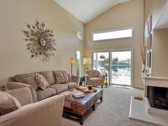 Breathtaking Panoramic Lake front home with private boat dock located in the prestigious community of Hidden Lakes provides Resort Style living and is available for immediate occupancy. There is more to this very private and spacious home than first meets the eye, 2202 square feet- 4 generous sized bedrooms and 3 Baths. Kitchen with granite counters, custom cabinetry and stainless steel appliances adjacent to the Family Room. Living Room features vaulted ceilings, marble fireplace and large windows to take in endless water views . Newly installed Hickory hard wood flooring throughout the top level and staircase. Master Bedroom suite with marble fireplace & Balcony to enjoy lake, mountain & sunset views. Master bathroom includes soaking tub and large shower. Oversized garage with epoxy flooring, laundry facilities, cabinetry and extra long driveway. Entertainer’s Yard includes mature California native landscape, Covered Patio & Trex Boat Dock. End unit directly across the lake from the Beach & Tennis Club which offers recreation for all ages- Lagoon, swimming pools, tennis courts, sand volleyball, basketball, exercise facility, classes, clubs, billiards,TV Lounge and festive social events. Low Taxes & No Mello-Roos. Please View Drone Video, Gorgeous!!!