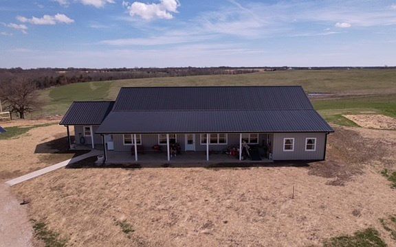 On 106 acres of fenced Missouri pasture, this 3500 sq ft., open floor plan home has 5 bedrooms and 2 full baths. The well built, all-metal home has radiant heat in the floors, thermopane windows, quarter sawn white oak custom cabinetry and trim throughout. The tankless hot water heater runs on solar panels, but rural electricity is readily available. The livestock farm has a 42 x 64 barn, small grain storage, two ponds, a living well and is fully fenced. Will divide. Contact Century 21 Lifetime Realty 660.665.5678!
