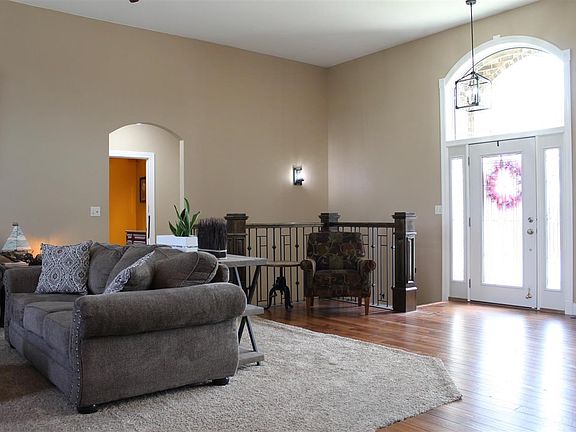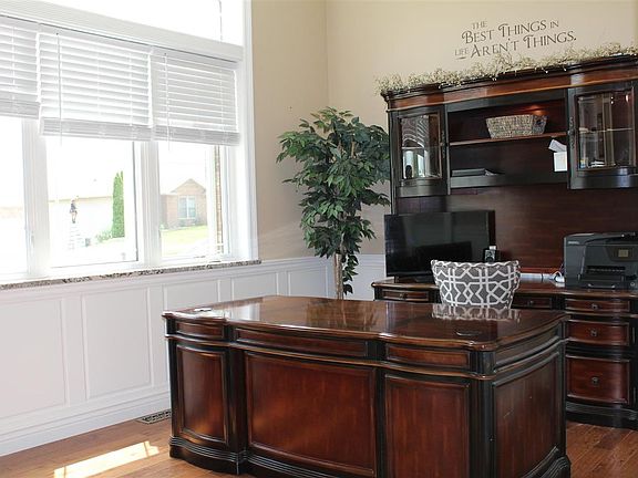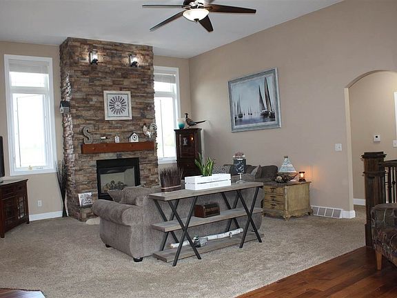Large Walkout Ranch Pool Home. 4 bedroom, office 3.5 baths and 3 car up. This home features huge master BR with a private 13x14 deck, spacious master closet with laundry hookups, master bath with awesome tiled shower and whirlpool tub. The large island style kitchen has granite tops tiled backsplash, slate appliances and hardwood floors. The living room has 12' elevated ceilings with a full height stone fireplace and a view of the farm field behind. There is an office that can also serve as a formal formal dining room and there is a huge main floor family room with a deck that leads out to the pool. The finished basement has another 3 car garden garage, bedroom, wet bar, storage room and a workout room that could be a non-confoming bedroom. The main level is over 2800' and lower level has another 1200' of finish. Other features are white trim, white doors, 2 laundry area on main level, lots of hardwood, new lights and lots of other updates used in new homes. The large pool has a simple soft filter system, gas heater and is surrounded by an awesome maintanance free deck and fence that overlooks a quiet farm field. This is a contractor owned home and is loaded with upgrades and is a must see. Clay Ridge is walking distance to Carver Elemenatary school, Roosevelt Middle school, the city park, library and Clay Ridge just built a new climbing playground.