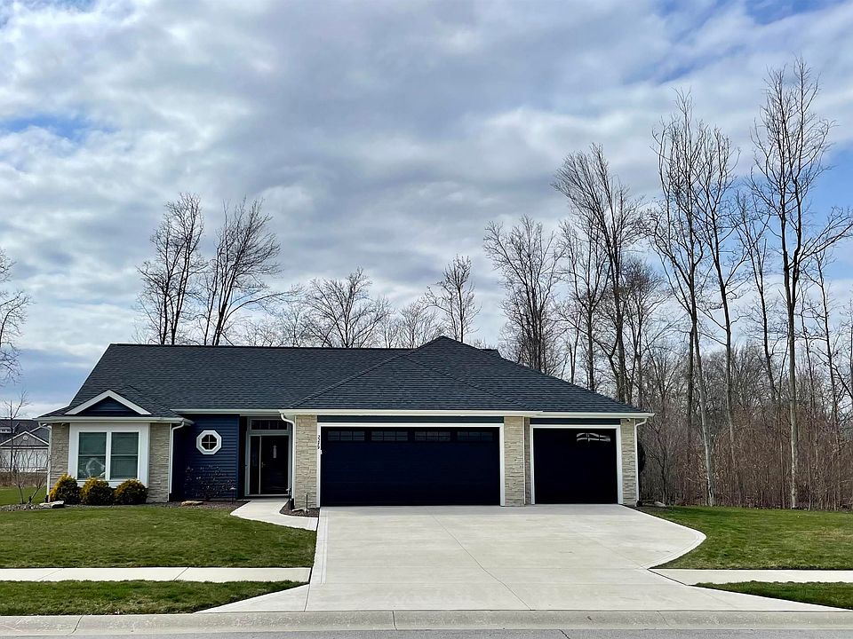 Gorgeous home available now in a highly desirable neighborhood. This beautiful ranch style home sits back in Wellington reserve on a secluded lot at the end of a cul-de-sac. This property has plenty of privacy and backs up to a small nature preserve but still allows a quick drive down the road to Jefferson Point for your convenience. This over 1600 square foot, 3 bedrooms and 2 full bath house has plenty of room with a large open family room equipped with cathedral ceilings and a gas fireplace that flows right into the dining and kitchen area. On the other side of the house there is a large master suite oasis with large tiled shower with a double vanity and a spacious walk-in closet. Huge custom stamped concrete back patio, perfect for relaxing on with amazing wooded views. Large 3 car garage with epoxy coating on the floors and custom soft close black garage doors that have an ADT feature to close and open from your phone. All appliances stay. Don't miss out on this beautiful, unique property in Wellington Reserve.