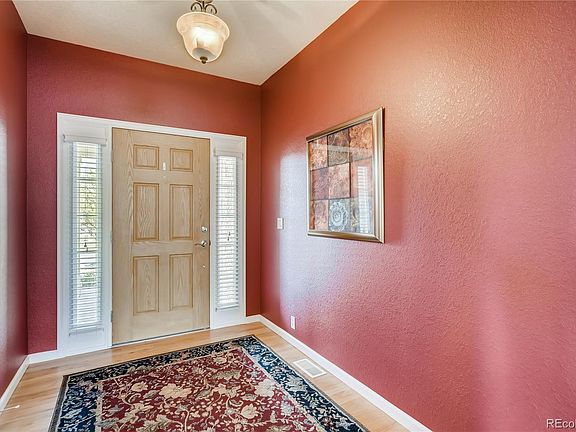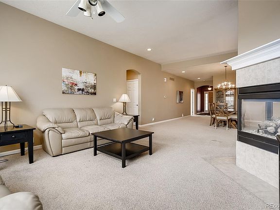 This Charming Home has over 1900 feet of living space and is located in the desired Canterberry area. This home features 3 bedrooms and 2 bathrooms. Master bedroom has a 5 piece Bath, large walk-in closet & ceiling fan. The 2 sided gas fireplace can be viewed from the formal dining room, living room, & kitchen. Beautiful wood floors adorn the kitchen & entrance. Cook top stove, wall oven, microwave, refrigerator, and dishwasher complete the kitchen. Access the 3 Car garage from the laundry room. Enjoy the 235 square foot backyard trex deck & fenced back yard. New air conditioner compressor was installed in August. Large crawl space is cemented for extra storage. Close to schools, parks, & Black Bear Golf Club. HOA community pool, tennis courts, snow removal and garbage collection. Parker Adventist Hospital is only 20 minutes away. Parker has a variety of restaurants and shopping. Only twenty to twenty-five minutes to two major malls. All appliances included. Liberty Home Guard Warranty Included and Home is Sold AS IS!