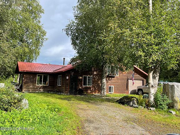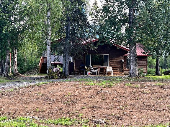 Great private house close to amenities, backs up to borough land with a main winter trail up to the Princess Lodge from Susitna Rd. Close to Petersville and amazing views of the Northern Lights,.Has big circular driveway that to can park a tractor trailer , heave equipment or large RV. 2 pol barns for storage and a large shop fro all your toys!Remarks from the seller: The things that we like most about this house is the awesome views of the aurora, plenty of parking, air compressor is hard piped through the shop and outside, has 220 plugs in shop one being for a welding machine, Toyo heater and insulated. We like that there are no neighbors on the sides, just the church that's used on Sundays and the other side is the end of the neighbors 21 acres with slim to no chance of being developed. We have a bunch of borough land behind us with a main winter trail up to the Princess lodge from Susitna Rd. Vitus to our north is maybe a mile and offers gas, fuel, heating fuel and propane. It also has a laundry mat and showers and food. To the south within walking distance is the post office and 3 Bears who also offer the same thing in addition to lodging, RV parking and pizza. There's Petersville Rd and Oilwell Rd which as you know boasts riding, hunting and gold mining. We like that it's a great location for whichever direction one wants to go. We were told that Trapper Creek school is well liked.