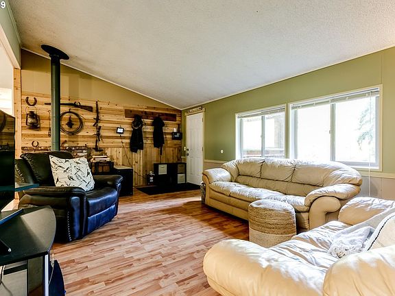 Amazing property at an affordable price. 3.3 acres that backs up to BLM property.Updates to home include:vinyl windows, exterior paint, roof,gutters, heating/cooling. Multiple outbuildings/storage including original home currently used as storage.Spring fed pond and Long Tom River runs through property.Ample gravel parking.Shooting range and 250 foot zip line.Gated with remote and keypad, security cameras included.