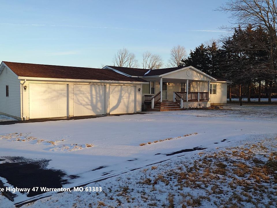 Welcome to 22798 South State Highway 47, Warrenton, MO 63383, a charming Single-Family Ranch nestled on a spacious 2-acre lot, just 6 miles from downtown Warrenton. This ranch-style home boasts 1,997 square feet of living space with a partially finished lower level, offering ample room for comfortable living. Upon arrival, you'll appreciate the convenience of a 3-car large oversized attached garage/workshop and oversized driveway, providing parking space for multiple vehicles. The property also features a large covered front porch, covered rear patio, and a spacious rear deck overlooking the expansive backyard, perfect for outdoor gatherings and enjoying the scenic surroundings. Inside, you'll find 3 bedrooms and 2 full bathrooms, including an enormous Master Bedroom Suite with a walk-in closet and built-in shelving. The home features hardwood floors or LVP flooring throughout, adding a touch of elegance to the living spaces. For added convenience, a washer and dryer are provided on the main-level laundry, which can be removed at the tenant's request if they have their own. The property allows for a maximum of two pets with landlord approval, subject to a $250 refundable fee and pet rent of $50 per month. Tenants are responsible for electric and trash, while water, sewer (septic) and lawn mowing service for this spacious 2-acre lot, are included in the monthly rental cost. The lease term is a minimum of 12 months and longer terms are available. Renters must have a minimum credit score of 650 with no prior or current evictions or judgments. Income must be at least three times the monthly rental amount. Prospective tenants are required to submit an application through Zillow, and property showings are available upon approved completed application. All references will be thoroughly verified. Renters insurance is mandatory with landlord as listed interest on policy. First month's rent and security deposit (equal to one month's rent) due at lease signing, along with any applicable pet fees. The property will be available for occupancy starting March 1, 2024, with the possibility of immediate availability. Please note that the pole barn located at the rear of the property and gravel parking area are not included in the rental and are used by the property owner for storage purposes.