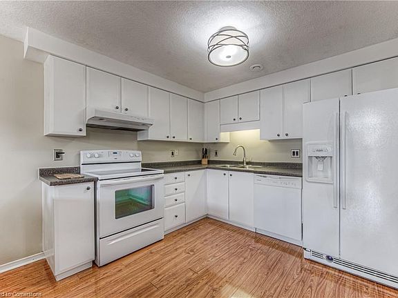 Welcome to this charming freehold townhouse located in one of Kitchener’s most desirable and family-friendly neighbourhoods. Perfectly situated within walking distance to both public and Catholic schools, this home offers the ideal blend of comfort, convenience, and lifestyle. Featuring 3 spacious bedrooms, this home is designed with family living in mind. The primary bedroom includes a walk-in closet, providing ample storage space and a private retreat. The open-concept main floor boasts large windows that flood the space with natural light, and a vaulted ceiling in the living room adds an airy, grand feel that’s perfect for both relaxing and entertaining. The kitchen and dining area flow seamlessly into the living space, making it easy to host gatherings or enjoy everyday moments with loved ones. The finished basement offers additional living space for a rec room, home office, or gym, and includes a rough-in for a future bathroom—adding even more potential to customize the space to your needs. Step outside to a generously sized backyard, complete with a large deck that’s perfect for entertaining, summer barbecues, or simply relaxing on a sunny day. Whether you're a growing family, first-time buyer, or looking to downsize without compromise, this home checks all the boxes. Don’t miss your chance to own a beautiful townhouse in a sought-after Kitchener community close to schools, parks, amenities, and more. Book your showing today!