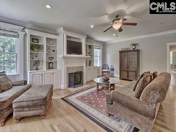 - Great Room: Molding, French Doors, Bookcase, Floors-Hardwood, Ceilings-High (over 9 Ft), Ceiling Fan, Recessed Lights