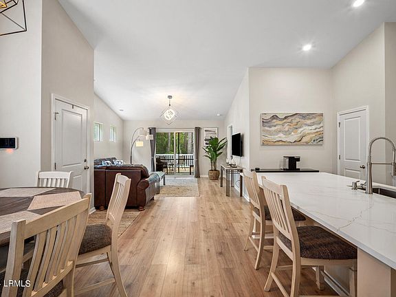 This luxurious one-level, 3-bed, 2-bath home features elegant luxury vinyl plank floors, high smooth ceilings, a fenced yard on both sides, and an open-concept layout with expensive light fixtures. The bright kitchen boasts quartz countertops and a large island. Owners have invested thousands in upgrades, including a custom deck and screened-in patio with stunning wooded preserve views. Spacious master suite is a private retreat. With a two-car garage, separate laundry room, low HOA, and pet-friendly community, this home offers pure luxury, just minutes from Hilton Head beaches, Old Town Bluffton, Beaufort, Savannah, dining, & shopping!