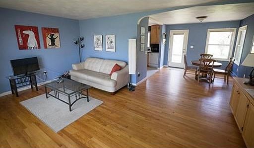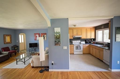 Open floor plan ranch in beautiful Leeds. Large built in bookshelves and cabinets adorn the living room, hardwood floors throughout. Attached garage and updated kitchen and bathrooms. Roof is 6 years old, updated electrical. Sunny home with replacement windows throughout. Custom cordless window shades throughout for privacy. Wildlife abounds in the neighborhood, turkeys and deer may visit the backyard. Monthly electric bill approx $100 House uses about 650 gallons of oil annually. Septic system installed 2002. See attached documents for feature sheet and survey.
