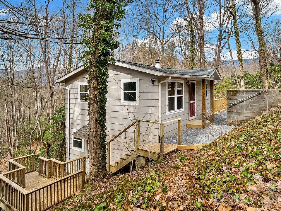 Beautiful duplex with seasonal mountain views. Newly remodeled with extensive list of upgrades including quartz counter tops, river stone showers, hand made carriage doors and premium flooring. Each level is fully independent with its own full bathroom, kitchen and bedroom. Neighborhood is HOA free so you can live life freely and comfortably on your own terms. Other new items include – New roof, new energy-efficient thermal pane windows, New heat pump, newly remodeled bathrooms and kitchens, upgraded plumbing to pex pipes, new high-efficiency adjustable LED puck lighting and a new deck. 6 minutes to Waynesville, 8 minutes to Sylva and 25 minutes to Asheville.