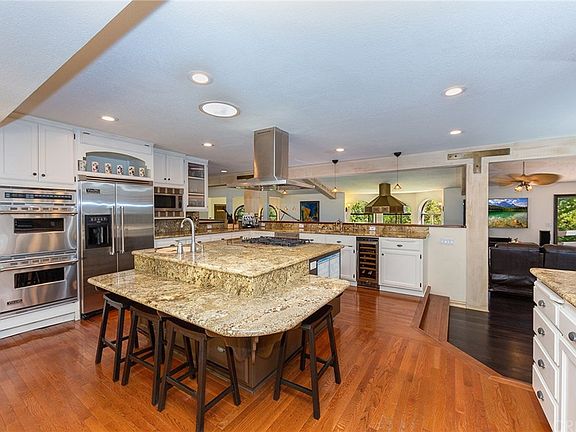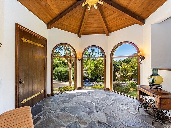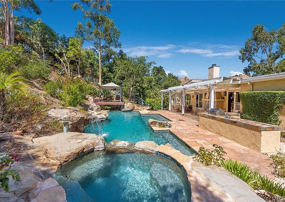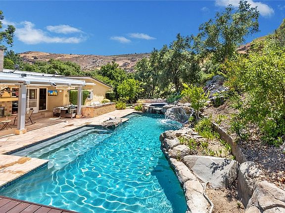 VERY IMPRESSIVE PRICE IMPROVEMENT; Experience this quiet sanctuary set amongst the trees in the exclusive, guard-gated community of Bell Canyon. The stunning octagonal entryway greets you with beamed ceilings and natural light. The large, entertainer's kitchen boasts Viking appliances and a large island made for family and friendsâ gatherings. The kitchen is ideally situated between the backyard patio and the expansive living room. It truly is the hub of the home. The private master retreat includes a fireplace for cosy nights, a large walk-in closet, a separate shower in a spa-like setting that includes a soaking tub looking on to the koi pond outside. Located on this level, another bedroom with en-suite bath sits on the opposite side of the master. Downstairs there are two additional spacious bedrooms with walk-in closets and a large bathroom. The spacious laundry and utility room is conveniently located off the 3-car garage downstairs. Outside you'll find the sparkling pool with a dramatic waterfall and cantilevered deck. The built-in BBQ, outdoor fireplace, and putting green allow for outdoor entertaining all year-round. You must come to experience this home for yourself.