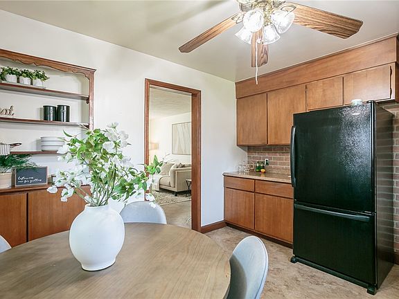 - Ceiling Fan(s), Eat-in Kitchen, Separate/Formal Living Room, Natural Woodwork, Window Treatments, Bedroom on Main Level, Programmable Thermostat