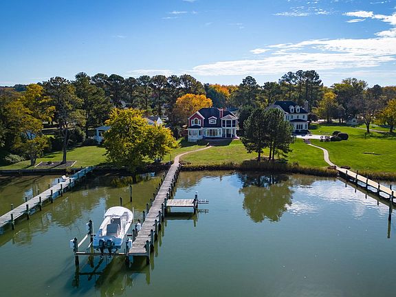 WOAH!! Just in time for waterfront season, this stunning custom-built home features a private pier with BOAT LIFT & JET SKI LIFT ready for emdless adventures. Featuring primary suites on both levels, this 3200 SF home is exactly what you've been searching for to enjoy life on Maryland's Eastern Shore. Views of Cox Creek greet you from the minute you step through the front door! The great room features a wall of French Doors to maximize the view, vauled ceilings and a gorgeous stone fireplace--one of 4 fire places in the house. Large eat in kitchen has lots of seating at the sprawling island and table space that soaks in the view. Seperate den offers another cozy space to relax. Main level primary suite is creek side and has slider access to waterside patio, fire place and large walk in closet. Upstairs the catwalk overlooks the great room. One side side is the second primary suite also with fire place and features a charming screened porch balcony. On the other side of the upper level there are two bedrooms connected by a Jack N Jill bathroom. If you need storage, there is a huge unfinished room above the garage for all your treasures. Oversized attached 2 car garage, too and for your best buddy, an invisible fence. GEMS like this one don't come around very often. Get in and start enjoying your best shore life!