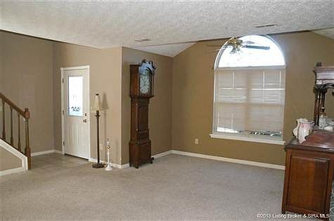 2400 ft. in this 3 BD RM 2 1/2 BA RANCH on a lot with an EXTRA LOT and HALF included. Walk in to a beautiful CATHEDRAL ceiling ENTRY , EAT-IN kitchen (18 x 16) with BKFT BAR. Cozy but LARGE LIV RM (20 x 20) , MSTR BDRM w/ BA, WALK-IN, upstairs are BDRM (14 x14) , JACK N JILL BA, BDRM ( 14x19) and, WOW-BONUS RM ( 23x17) , STORAGE THROUGHOUT!! Freshley painted bedroom, professionally cleaned carpets. There's more! HVAC new (2011) , dead end street, Quiet, Country living so close to town! AND 2 1/2 LOTS!! Sqft, schools and lots should be verified by agent.\n\nInformation Deemed Reliable But Not Guaranteed. Information provided by the Southern Indiana REALTORS® Association, Inc. © 2010 SIRA Multiple Listing Service. All rights reserved. Brokered And Advertised By: Schuler Bauer Real Estate Services ERA Powered (NA) Listing Agent: Dayna Ashley