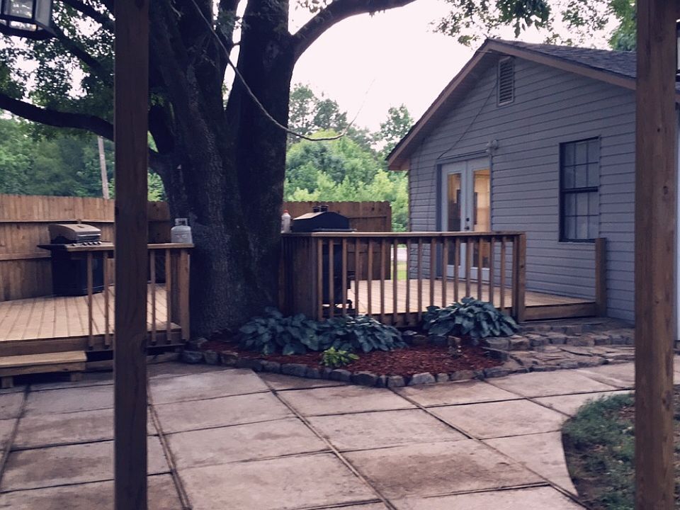 Enjoy your evenings on the patio with the stone fireplace keeping you cozy and warm. Large wood deck with pergola. French doors lead from the living room to the deck. Partial wood flooring, storage building with chicken/dog pen attached. Home has an extra-large closet that contains some plumbing and could be turned into a second bath. Well-kept home with a great price.
