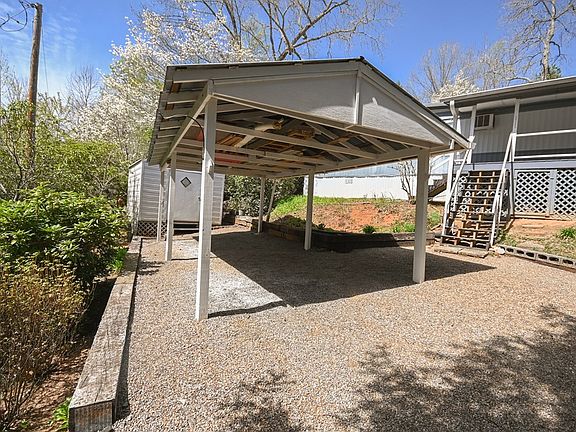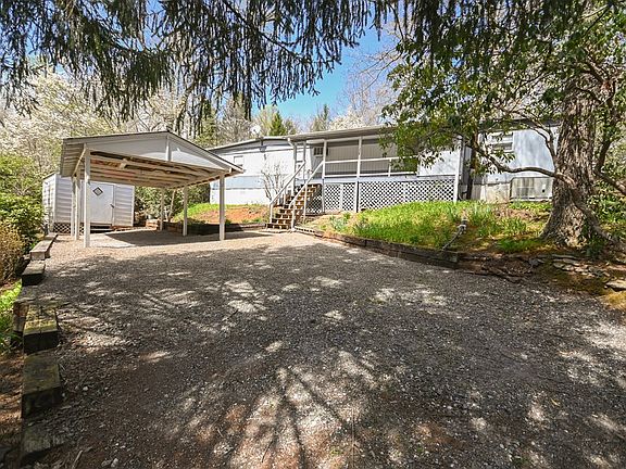 Welcome to Camelot Estates, where you'll find year-round 55+ living at its best! This affordable home is furnished and ready for you to start enjoying the mountain lifestyle tomorrow. The home features a cheerful 3-season sunroom, where you're sure to enjoy lots of time entertaining, reading a book, or watching the birds. The sunroom leads into the living room, a nice-sized dining room, and kitchen. Down the hall you'll find a full bath with step-in shower, bedroom, laundry area, and access to the rear deck - great for enjoying a private meal. A heat pump has been installed for heating/cooling, and windows have been updated. The HOA of only $300/year covers your well and paved road maintenance. Situated on a lovely lot, there's access from two sides, with a carport in place at the rear entrance. Abundanct perrineal plantings will present you with surprises all Spring & Summer. There's also a 12x10 powered shed for the handyperson or great storage. Camelot Estates is a well-established 55+ neighborhood, just North of town in Franklin, NC. Affordable living does still exist!