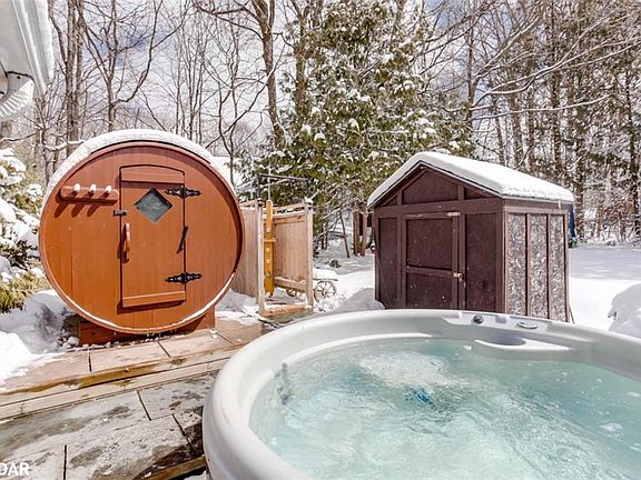Discover the perfect blend of charm, comfort, and adventure in this updated 4-season bungaloft nestled in the heart of Beaver Valley. Just steps from the beach at Lake Eugenia, this 880 sq. ft. home offers a fantastic opportunity for Airbnb investment or year-round living. Step inside to an open-concept kitchen, dining, and living space, warmed by a cozy propane fireplace and featuring hardwood and barn board accents throughout. The south-facing sunroom provides a bright and inviting space to relax, while the two bedrooms and 3-piece bath complete the main home. Outside, enjoy a 12' x 10' custom bunkie with heat and A/C, perfect for guests, and a 12' x 20' garage/workshop with paved parking. The outdoor space is designed for relaxation and entertainment, featuring a patio for BBQing, a sauna, hot tub, outdoor shower, and fire circle. Ideally located near ATV, hiking, and snowmobile trails, skiing, a boat launch, and five stunning waterfalls, plus restaurants and more, this property is a true four-season getaway. Don't miss this incredible opportunity schedule your viewing today!