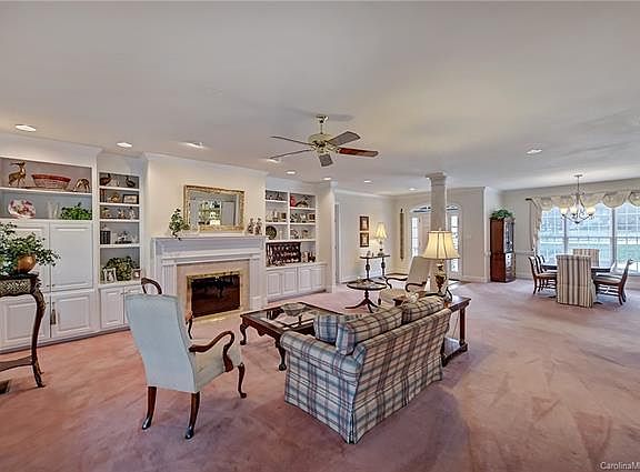 Hard to find IMMACULATE RANCH home on golf course! 3 BR, 2.2 BA! Open floorplan-great for entertaining! As you enter, dining room is on left. Great room w/fireplace & built-ins on both sides & wet bar. Double doors exit to covered back porch. Kitchen is large w/tons of cabinets, desk area, large eating area & truly walls of windows for tons of natural light! Door off eating area to covered porch. Large laundry upon entry from garage w/sink & toilet. Master is oversized w/spacious sitting area, tray ceiling, tons of windows & door to covered porch. Ensuite bath has dual vanities, jetted tub, shower, dual closets & shutters. 2 additional bedrooms joined by jack-n-jill bath w/dual sinks & sitting bench/storage under window. 1 bedroom has dual closets. Home is on 14 hole of golf course. Covered porch expands back of home. Stairs off kitchen lead to approx 1000 sq ft unfinished. Elec water htr (7/18) supplies kitchen/laundry. Tankless water htr supplies rest. Roof-2011.