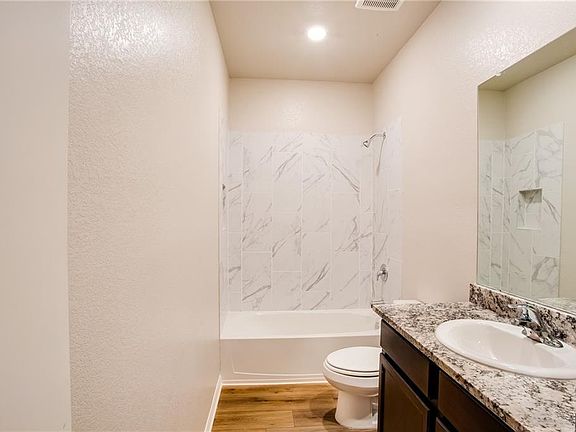 The Jasper is a spacious 4-bedroom, 2-bath home with an attached 2-car garage the largest single-story layout in the sought-after Liberty Parke community. This home includes premium upgrades such as stainless steel kitchen appliances (including a refrigerator), elegant wood cabinetry with crown molding, granite countertops, and a Wi-Fi enabled garage door opener. The Jasper also features a beautiful brick-and-stone exterior, a covered front porch, a fully fenced backyard, and professionally landscaped front yard.