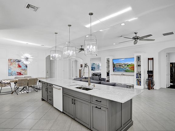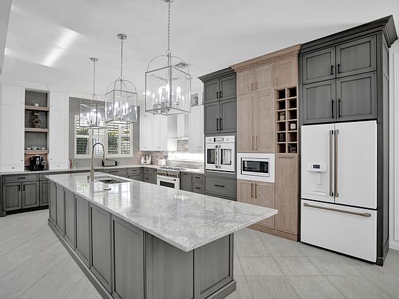 PLEASE BRING AN OFFER!! Welcome to this stunning, move-in ready coastal designed home which has been fully upgraded from stem to stern. As you walk through the beautiful double glass door entry you will love the wide open floor plan. This home features an updated chef's dream kitchen (2020) designed and installed by your local kitchen experts Schrappers Cabinetry. The kitchen features the new and highly sought after custom Cafe appliances with brushed bronze finishes and includes a 6-burner gas stove with double induction oven, built-in microwave/convection oven, extra long Summer Hill Cambria Quartz counter tops, over sized single basin sink, and beautiful custom moldings and formal dining area. There is also a beautiful custom built-in bar with ice maker and refrigerator for your entertaining pleasure. There is also crown molding throughout, freshly painted interior, tile on the diagonal, bamboo flooring in the bedrooms and throughout 2nd floor, and complete impact windows. The master bedroom suite is on the first floor and features his and her closets and a large updated bathroom with a frameless shower and separate jacuzzi tub. There is also an additional full ensuite guest bedroom on the 1st floor and a 3rd bedroom which can also be used as an office or den. There are two guest bedrooms upstairs complete with a Jack and Jill bathroom, and a nook in the loft area which can be a reading niche, study or wherever your imagination takes you. This home has the perfect combination of a spacious open floor plan, and intimate areas for entertaining, and family lifestyle. The home has classy touches including modern ceiling fans, updated designer light fixtures, LED lighting, gorgeous custom built-in shelving, built-in entertainment center in the family room large enough for an 80 inch TV(which Sellers are including in the sale, a brand new AC unit with ultra violet light, custom pull-out and soft close drawers throughout, plantation shutters, and lush custom landscaping. All this plus a large private backyard which backs up to a canal and preserve, a heated pool/spa with brand new over sized pool heater for faster heating, brand new pool deck with sand blasted marble and separate above ground 7-8 person Jacuzzi J325 Hot Tub. This home boasts luxurious family living as well as a perfect layout for entertaining.