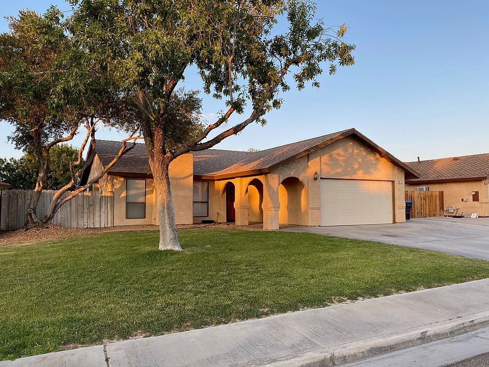 Well maintained, four bedroom, 1 3/4 bath, home in lovely neighborhood. Two car garage with laundry hookups. Wood burning fireplace. Lots of storage. Front lawn care maintenance included. Large enclosed patio. Newly painted. Flooring : Pergo, carpeting and tile. VERY CLEAN: MOVE IN READY. Good location. Small dog accepted with $500 pet deposit. One year lease. Owner pays for lawn maintenance. Tenants pay all utilities. One small dog is acceptable with a pet deposit.