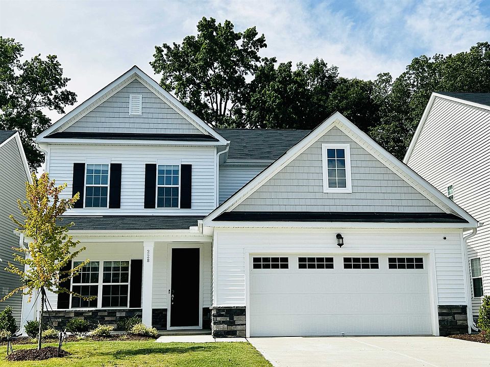 The one you have been waiting for in Wake County! This home is a stunning example of craftsman style architecture, built in 2021 with four spacious bedrooms and three full bathrooms. The main level features a bedroom and a full bath, perfect for guests or in-laws. The formal dining area, private office, and family room offer plenty of space for work and play. The kitchen is a chef's delight, with a gas cooktop, wall oven, and ample counter space. Upstairs, you'll find three more bedrooms and a loft that can be used as a gym, reading area, media room, or playroom. The primary bedroom greets you with tray ceiling, double vanity bathroom, a separate soaking tub, and walk-in closet. The home has 9ft ceilings throughout and a 2-car garage. The fenced backyard features a screened in porch, patio area and landscaped area including a few planter boxes. It's located in a great school district and has easy access to all of the Triangle. Walking distance to Carolina Charter School (lottery based). Don't miss this opportunity to own this beautiful home!