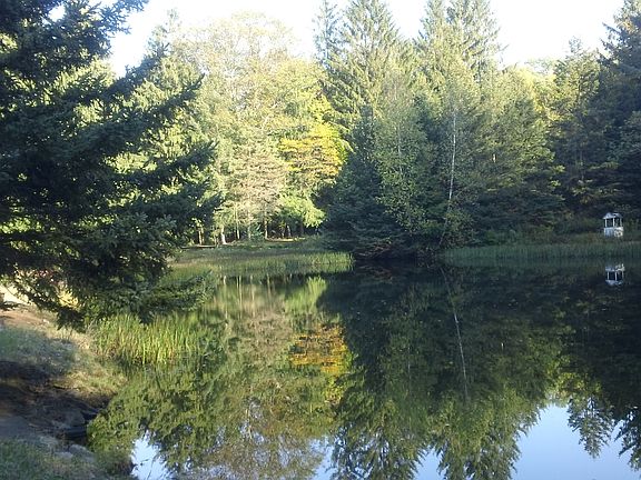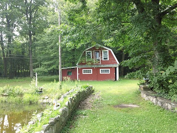 MOUNTAINTOP - ICE SKATE, BOAT OR FISH IN YOU OWN YARD! Unique property complete with stone bridge. 7 rooms, 3 bedrooms, 2.5 baths,natural wood floors, carpet & tile flooring, lots of storage,fresh water pond, creek, waterfall,red barn with loft, 2 sheds, patios, enclosed front porch and back porch sun room, eat in kitchen, pantry,fireplace, wooded private backyard, low taxes, low cost utilities, city water and sewer, gas and electric heat, new electric hot water heater,all appliances included,big sky views with lots of sunlight,private yet close to everything.,foothills of the Pocono's * can be sold furnished at additional cost Neighborhood Description Private near Rt 80 & Rt 81 just off Rt 309 on a county road.