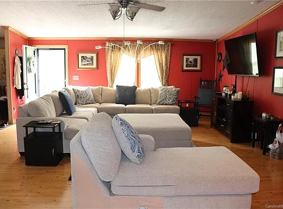Meticulously maintained one owner modular home in Mooresville. Upgraded kitchen with custom cabinets, double oven, and stainless steel appliances. The master bedroom is spacious and the master bath has a custom tiled walk-in shower and double vanities. Open living room with gas logs. The fenced in rear yard is an entertainer's dream with a screened in porch with hot tub, stone fire pit with pergola, an above ground pool with patio, and two large storage buildings. The mature landscaping includes an abundance of flowers, shrubs, fruit trees, weeping willows, and a mature garden to the rear of the pool. Upgrades and improvements include: metal roof, new vinyl exterior, new glass skylights, gutters & gutter guards, and new windows on the front (all 7 years ago). Skylights in the kitchen and both bathrooms. Security system with monitor to remain with the home.