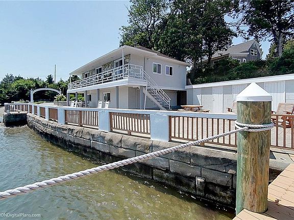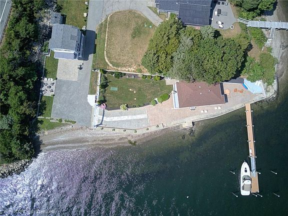 Private multifamily waterfront property with a 60’ pier and two 40’ deep water slips. Power and freshwater hook ups. Two fully furnished units with wonderful water views. Top floor, two bedrooms and bath with deck overlooking the bay. The lower unit has one bedroom with direct access to the full waterside deck. Separate outdoor bathroom and shower plus individual storage units. – 300 feet of waterfront/beach. Minutes from Island Park and its beaches and restaurants and 20 minutes from Newport or Bristol. Significant income possibilities. Lease history available.