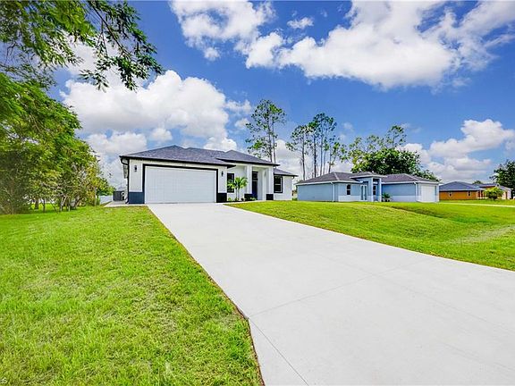 Best value and exceptional quality. New construction, luxurious contemporary home with plenty of room for parking. This home is impeccably designed and built with attention to every detail. All lights throughout the home are LED, all doors and windows are high impact and includes a sprinkler system. The open floor plan seamlessly blends indoor & outdoor living. Double entry doors welcome you into the light and bright interior with Sofi in the master bedroom ceiling and 36x36 porcelain title throughout home. Expansive living room with high 10"tall ceilings. The kitchen boasts gorgeous 42" solid wood soft close cabinets with quartz countertops, a broad counter height island along with stainless steel appliances. The guest bedrooms are large with tall ceilings and ample closet storage. This Home is close to shops, restaurants, schools and THE BEST SW FLORIDA CAN OFFER.